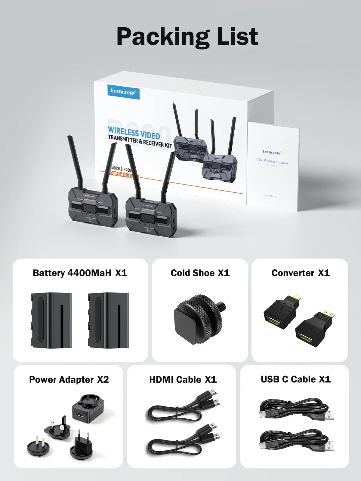 De Lemorele Wireless HDMI USB-C-1080P Transmitter Kit R200 biedt een innovatieve oplossing voor draadloze HDMI-overdracht over lange afstanden. Ontworpen voor zowel thuisgebruik als professionele toepassingen, biedt deze kit de perfecte combinatie van kwaliteit, betrouwbaarheid en gebruiksgemak.