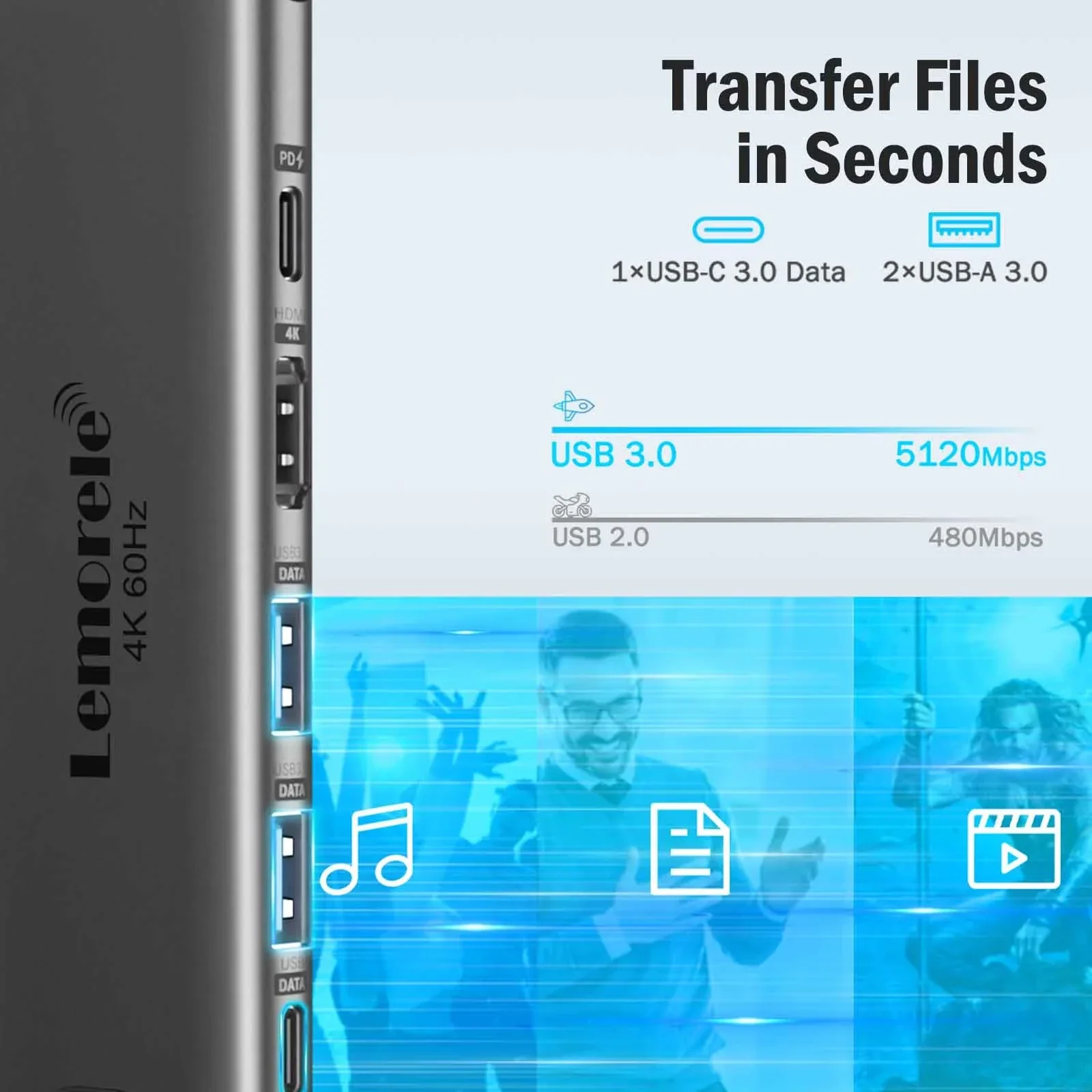 Lemorele TC44 – 6-in-1 USB-C Hub Docking Station – HDMI 4K@60Hz