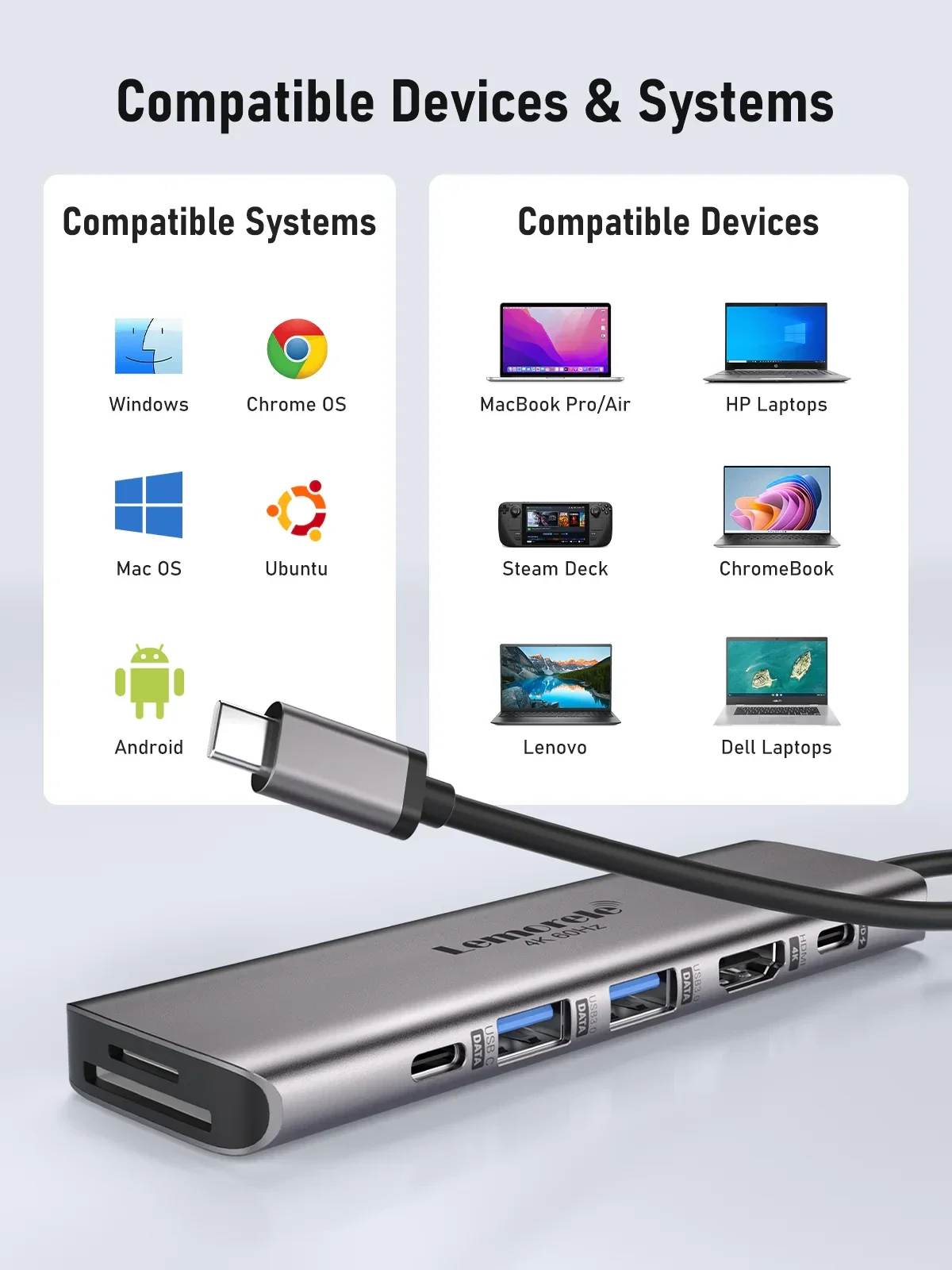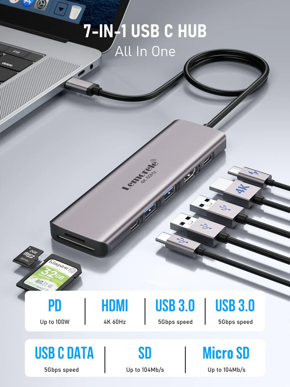 Lemorele TC45 – 7-in-1 USB-C Hub – HDMI 4K@60Hz