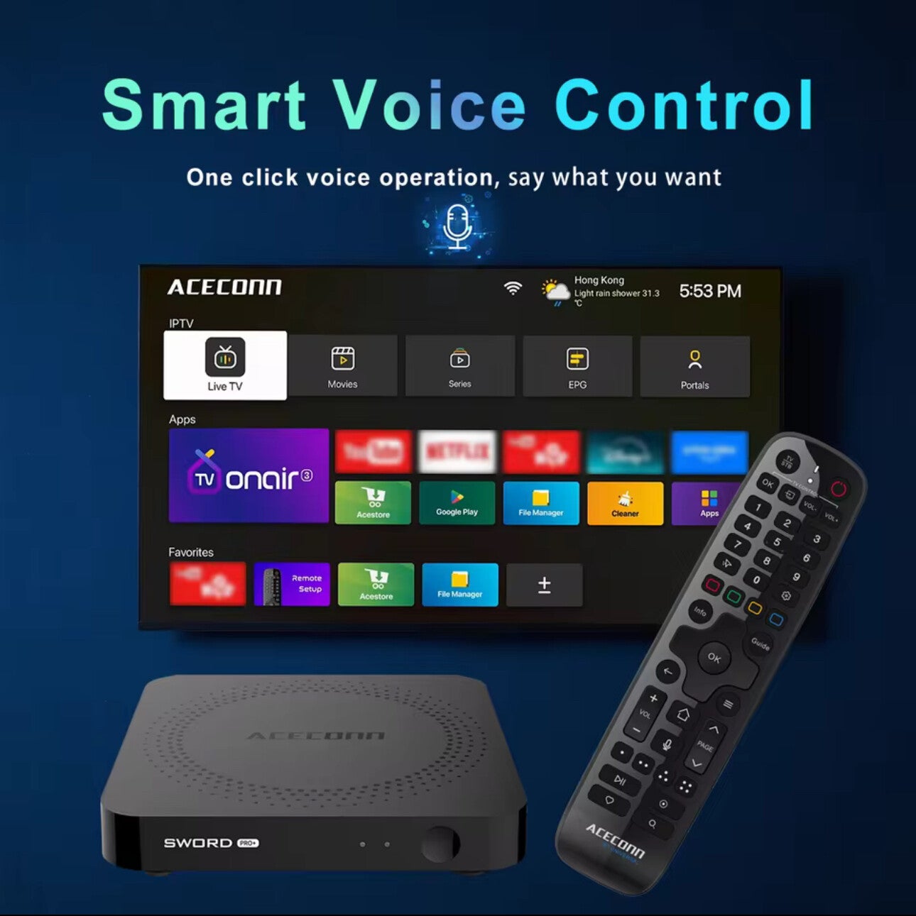 De ACECONN SWORD PRO+ is een krachtige Android 11-mediaplayer die is ontworpen voor snelle prestaties, vloeiende beeldweergave en gebruiksgemak. Dankzij de Amlogic S905W2 Quad-core 64-bit chipset, 2 GB DDR3 RAM en 16 GB eMMC opslag, reageert het systeem snel en is er voldoende ruimte voor apps en mediabestanden.